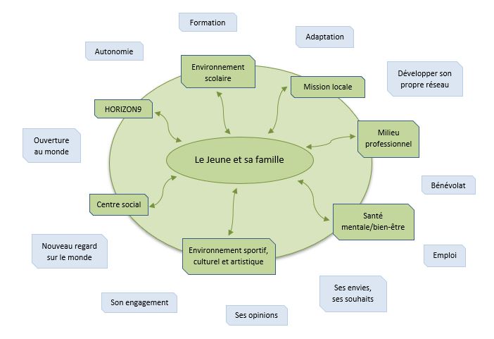 - Mobiliser le.la jeune et sa famille par une dynamique positive vers sa réintégration au sein d’un établissement scolaire ou d’insertion professionnelle.