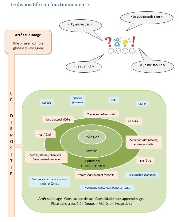 L’association HORIZON9, forte de ses collaborations partenariales pour « aller vers » les publics adolescent.e.s (collégien.ne.s 12/15 ans et lycéen.ne.s 16/17 ans) expérimente un dispositif d’accueil divisé en 2 pôles :
